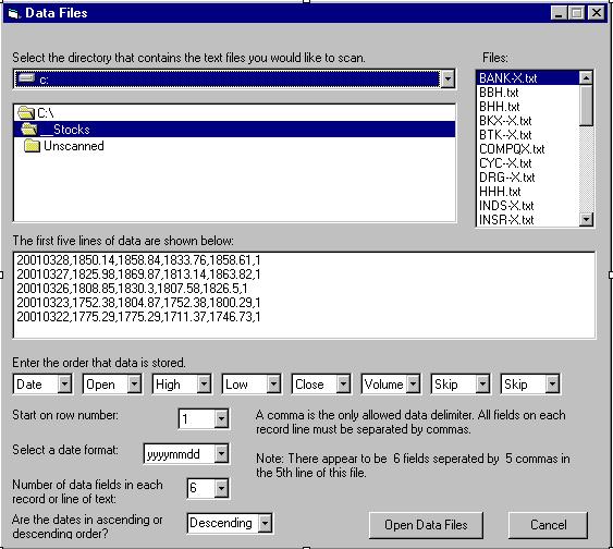 TC2000 Data File Selection:
