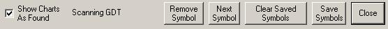 Push this button and the scan will begin. The program will show the ticker symbols for the stocks as it runs, allowing you to keep track of the progress. When finished, a window will pop up that says “Scan Finished”. Click OK to close this window. You are now ready to view the charts returned.