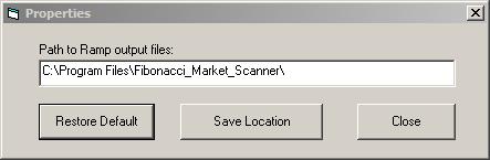 Where are the output files? The path to the output file directory is always displayed across the bottom of the Fibonacci Market Scanner main screen. You can change the default location if you choose. Under the “File” menu at the top left there is a menu item called “Output File Location”. When you click on this item, a window will appear that will let you edit the output directory path.