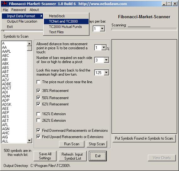 Note that there is a check box to instruct The Fibonacci Market Scanner to also